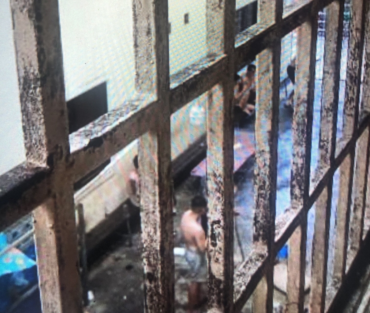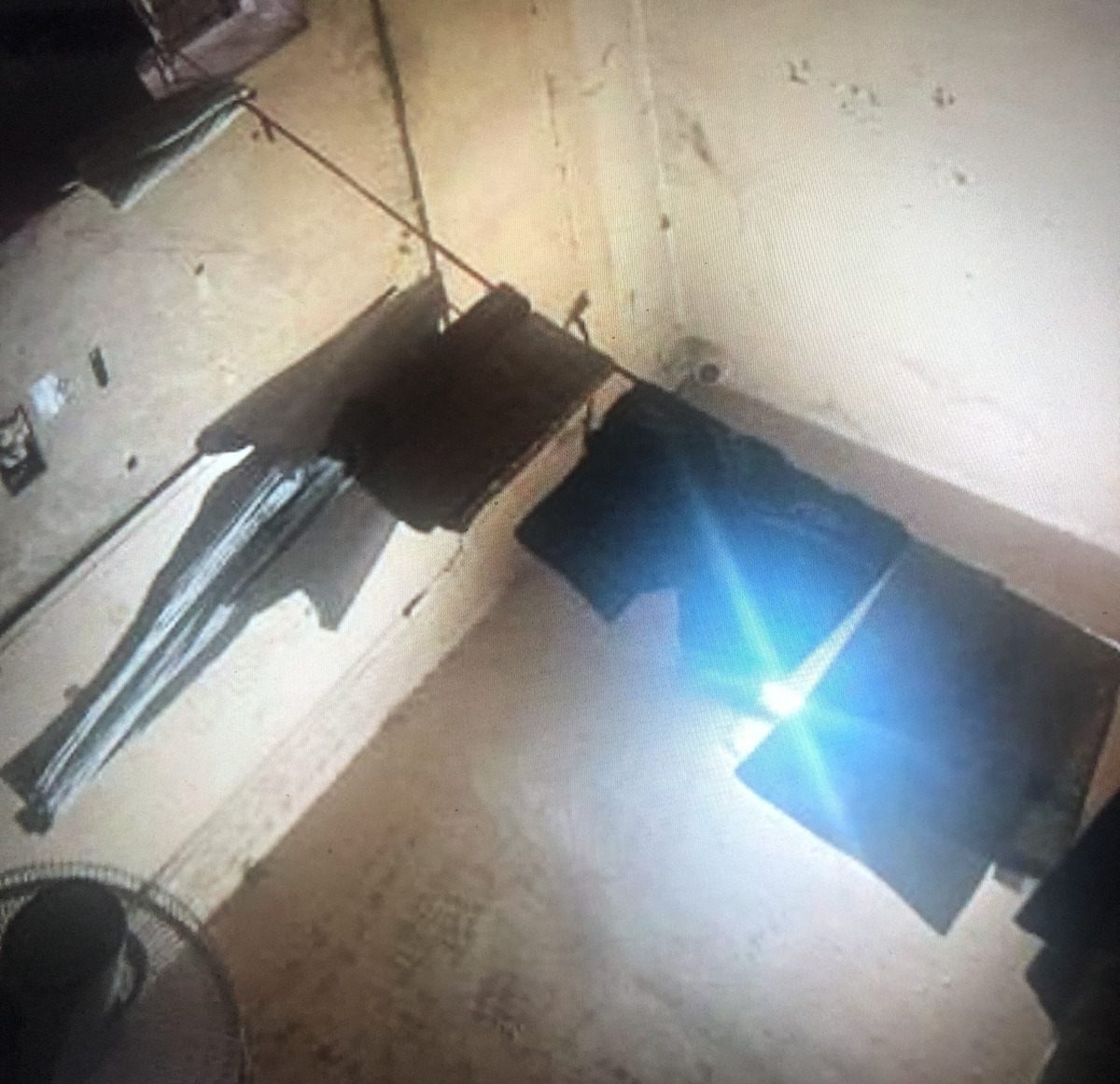 캄보디아 한 범죄단지의 내부 모습. 남성의 손이 철제 침대에 묶인 것으로 추정된다. [독자 제공]